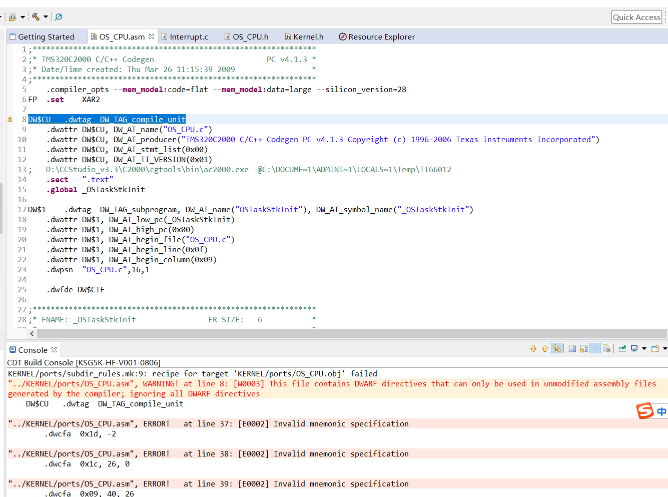 截图很清楚了,看告警是说你这个编译器不支持DW_TAG_compile_uint ,导致所有.dwcfa命令都发生错误!