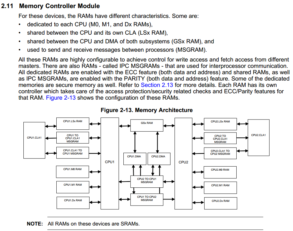 | CPU2 to CPU1 MSGRAM(1) | 1K x 16 | 0x0003 F800 | 0x0003 FBFF |