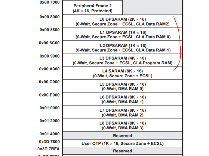 这个在内存映射中确实是这样写的,但是我试着将CLA程序映射到L5-L7这段内存中,也没发现什么错误,运行好像也没有什么问题。