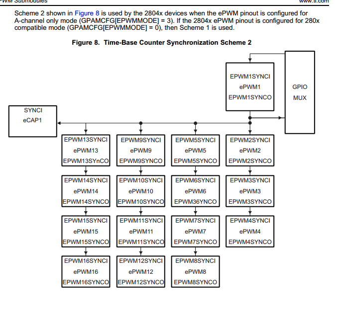 那请问ECAP模块的APWM模式的同步信号又是一个什么结构呢?目前我只知道ECAP1/2/3的同步信号是连在一起的