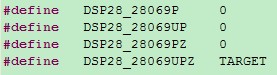 现在使用TMS320F28069PZT (100引脚)这款芯片做开发,在F2806x_Device.h器件选型中,应该选择如下哪一款呢,是不是DSP28_28069PZ和DSP28_28069UPZ都可以,这两种都是100引脚的,选择哪一款不会影响编程?