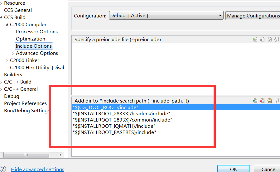 Fatal error #1966: cannot open source file "D:/ti-cgt-c2000_15.12.7.LTS/include": Invalid argument