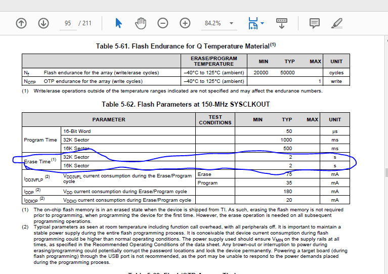 TMS320F28335PGFA 圈出来的部分,正常擦除一个部分是2s, 一共4次。所以应该是8s就可以擦除。但是现在要要用到18s, 帮忙咨询这种现象是否正常 ~