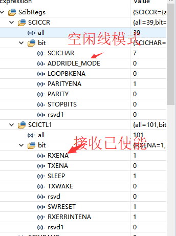 空闲线模式, 接收使能, 接收中断已使能, 485芯片一直处于接收状态, 如下图
