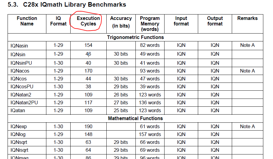 28335中_IQ1sqrt与_IQ30sinPU的运行指令周期分别是多少?