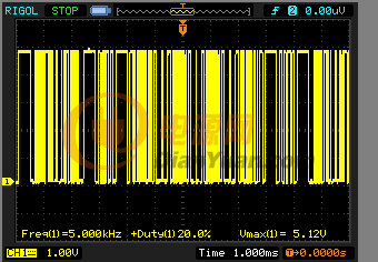 使用28335产生pwm,用示波器观测的输出pwm波形如下,