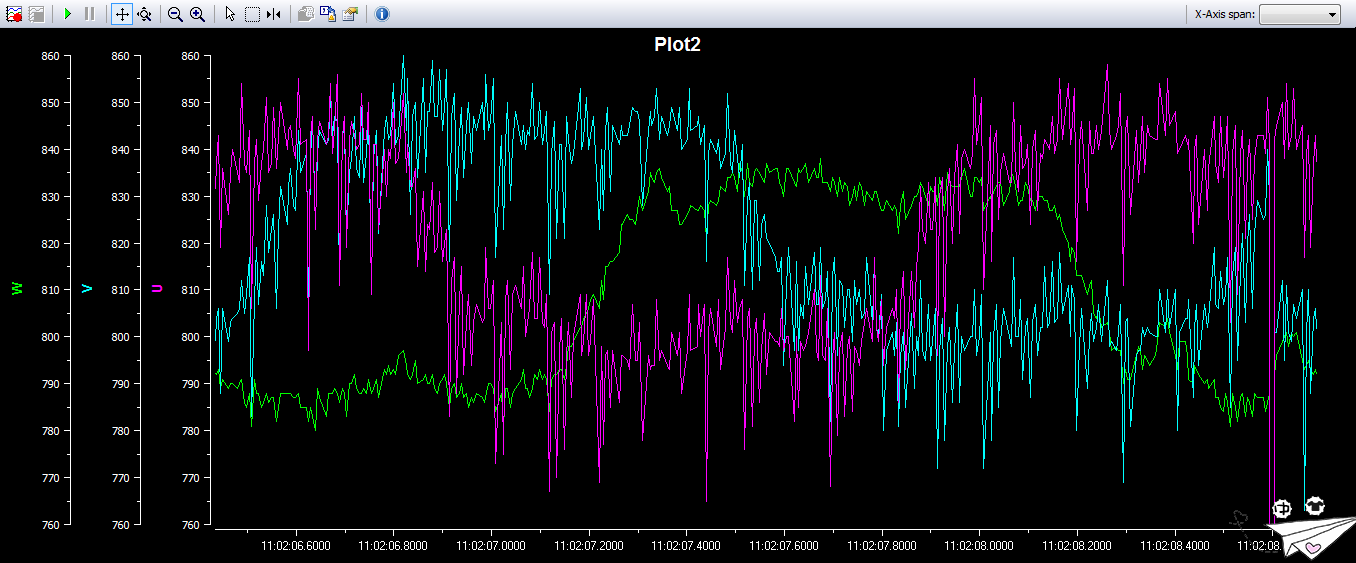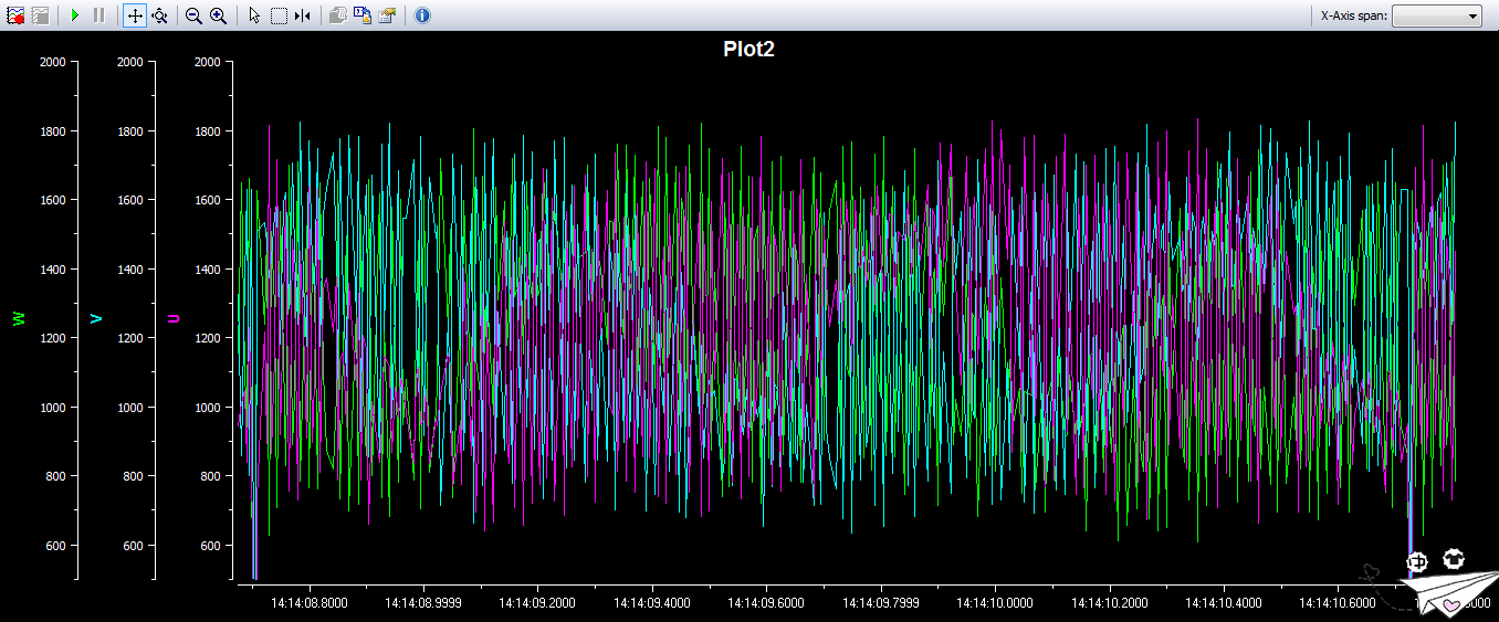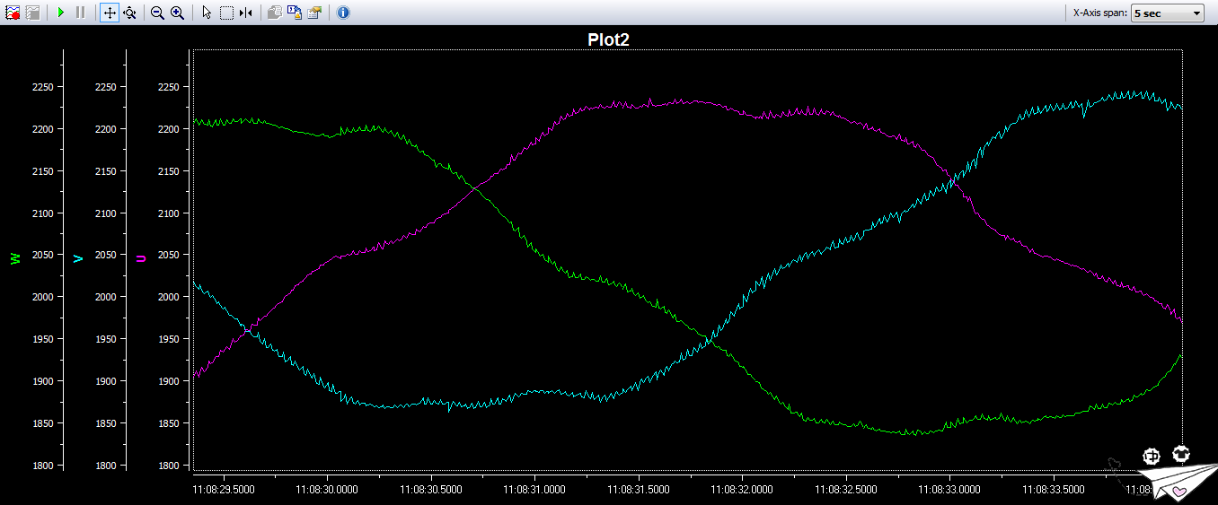 图4:Lab1b运行时的电压ADC值(125us采样周期)