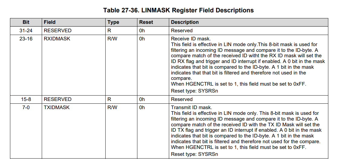 你好,我想问问在LIN的报文过滤设置中,如何设置RXMASK和TXMASK 和ID-Slave-Task byte寄存器: