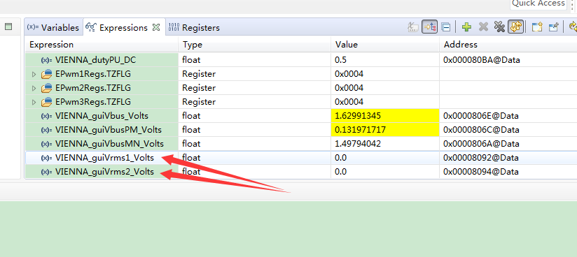 为什么除了直流侧的电压之外,输入电压电流的值都不更新呢??这是咋回事?我是一步步按照指导来做的。