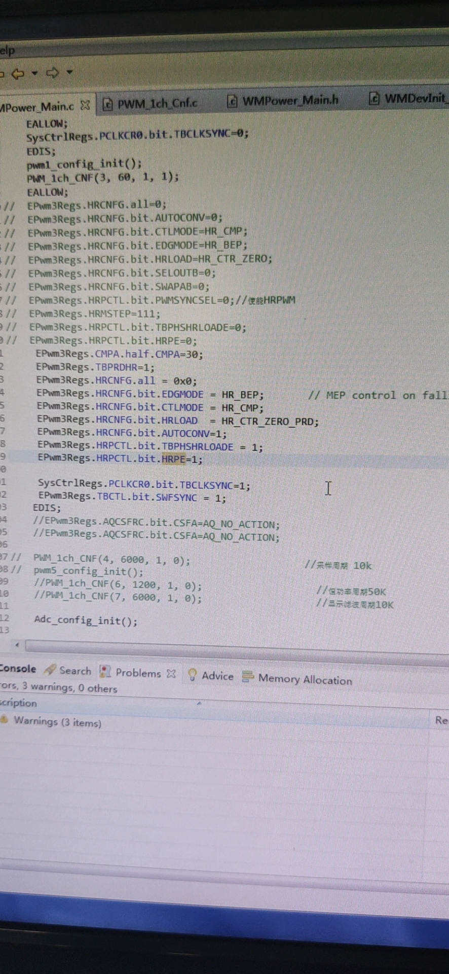 最近调试28035高分辨率pwm,在条是过程中想使用高分辨率频率,代码如下: