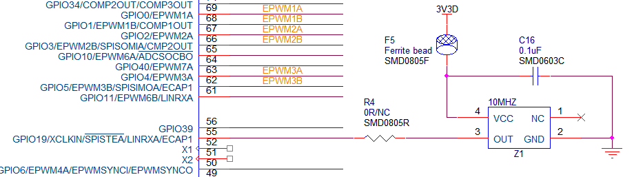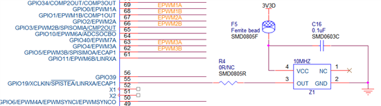 以前只用过无源晶振接F28035/F28335,第一次用有源,请高手检查一下是否是对的!