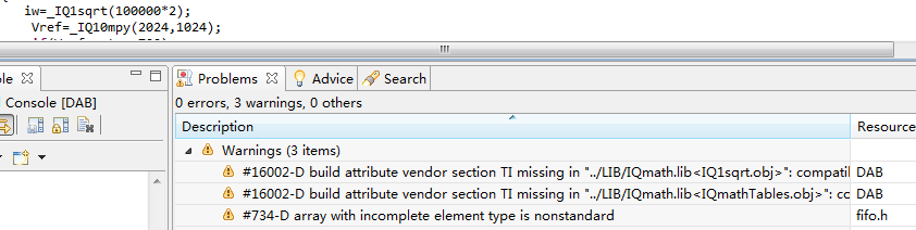 #16002-D build attribute vendor section TI missing in "../LIB/IQmath.lib<IQ1sqrt.obj>":