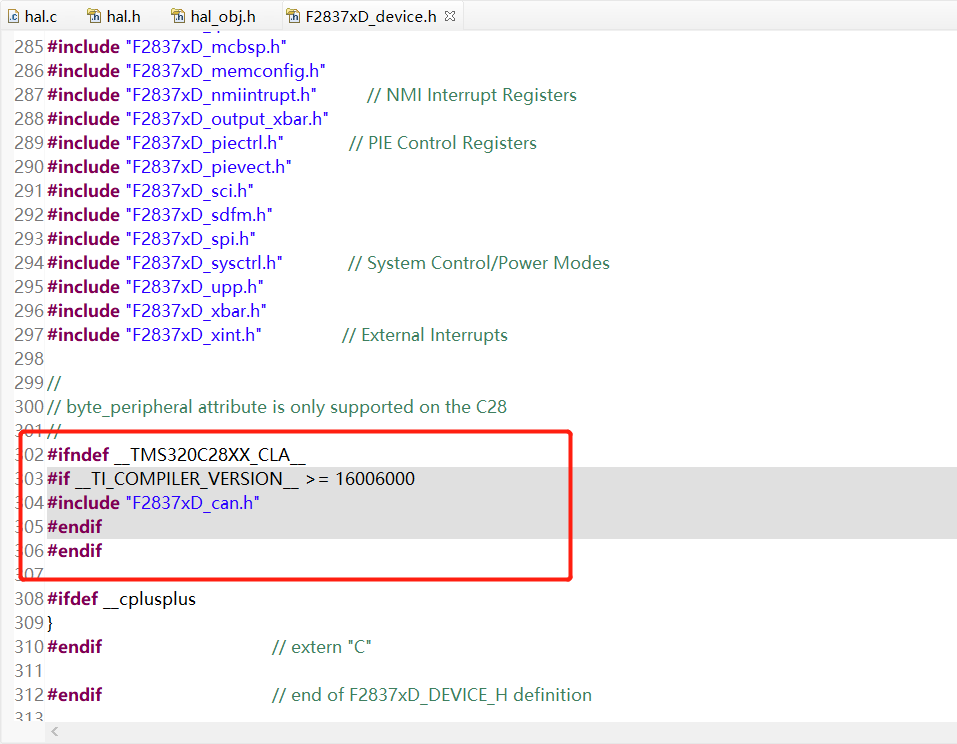 各位老师,在将原来使用CCS6.0建立的28335工程,编译器版本为v6.2.5,改为28379的芯片工程时,怎么使用官方的头文件”2837xD_can.h“呢,官方例程中使用CAN的头文件还要检查编译器的版本。低版本的编译器怎么使用”2837xD_can.h“?