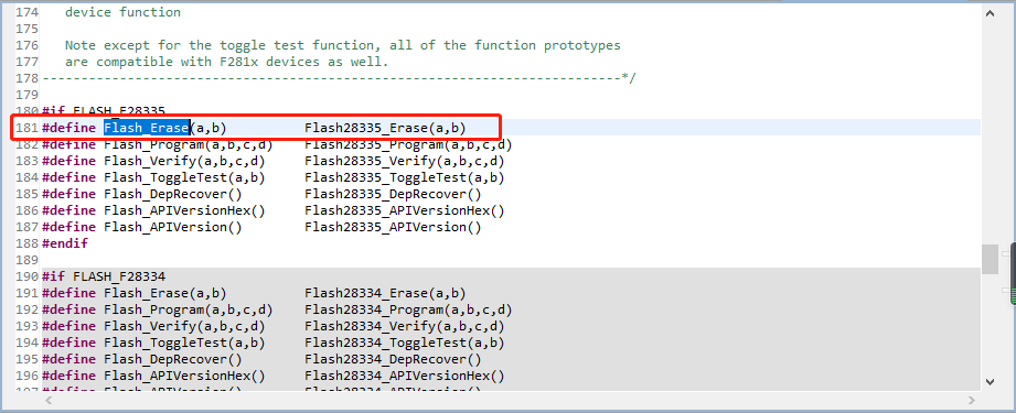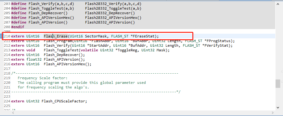 您好,我在编写FLASH擦除和写入程序时,发现Flash_Erase(Uint16 SectorMask, FLASH_ST *FEraseStat)是一个外部引用的函数(如图1所示),我想看一下它的具体程序却跳转到到define的一个定义处(如图2所示),是擦除程序本身就是这样的还是我没有找到正确的Flash_Erase的函数程序呢?(Program和Verify函数亦如此)