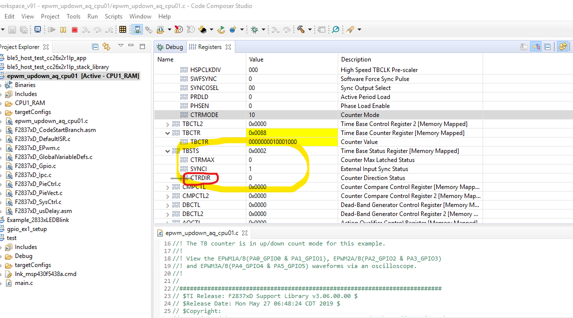 有没有一个期存器是用来判断epwm的计数器在此时刻是向上计数还是向下计数的,数据手册里写的是CTR_dir但是好像不是一个寄存器的啊