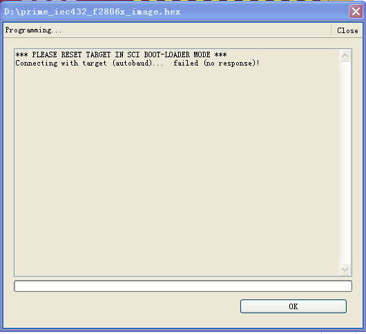 按照28069的SCI烧写跳线,用Codeskin的C2Prog工具烧写 ,但是就是连接不上,第一步就出现如上问题