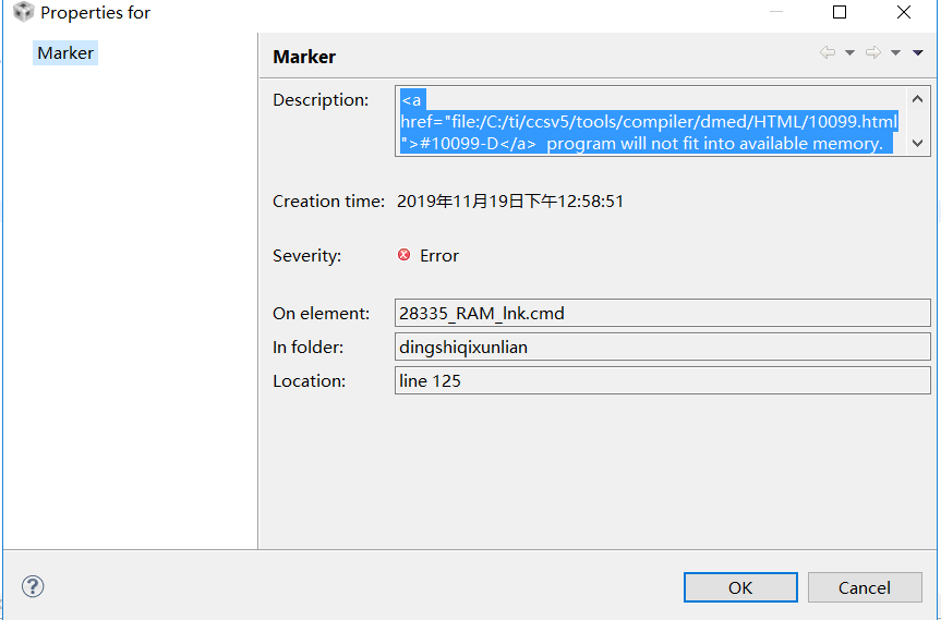 <a href="file:/C:/ti/ccsv5/tools/compiler/dmed/HTML/10099.html">#10099-D</a> program will not fit into available memory