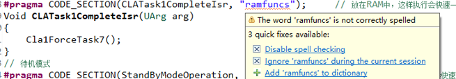 您好,使用CODE_SECTION的时候发现这个段的下面有一个红线,出现了这个警示,如下图所示,不知道这个是否有影响,编译没有警告或者报错,就是担心是否会有影响,谢谢!