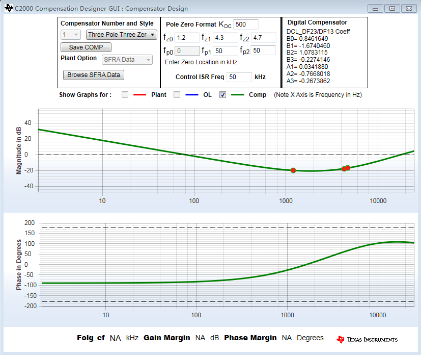 请问如何在Compensation Designer界面中设置Plant曲线,OL代表的是什么曲线?