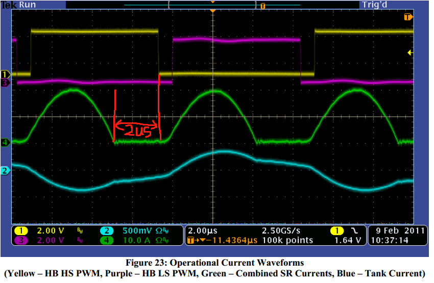 TI回复说,SR的关断是靠FEM = 65 (约1.08us)这个移相值来完成的,但是可以看到Figure23中 SR提前关闭的时间约2us。所以在实际运行中FEM的值会根据工况进行调整。我的疑问就是这个值是怎么计算出来的。