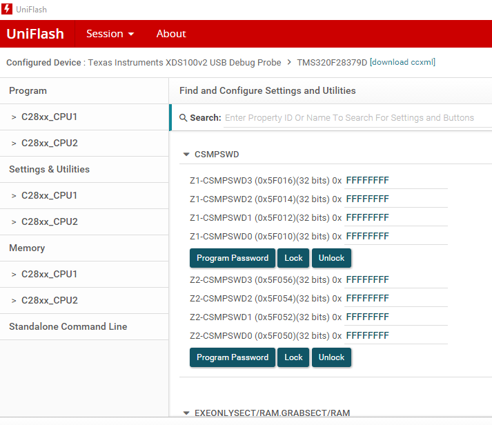 3.使用UNIFLASH能下载程序,下载了带有密码的程序