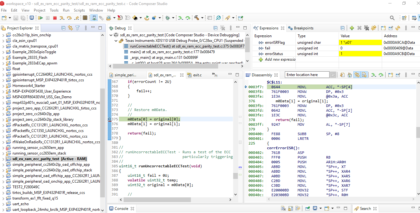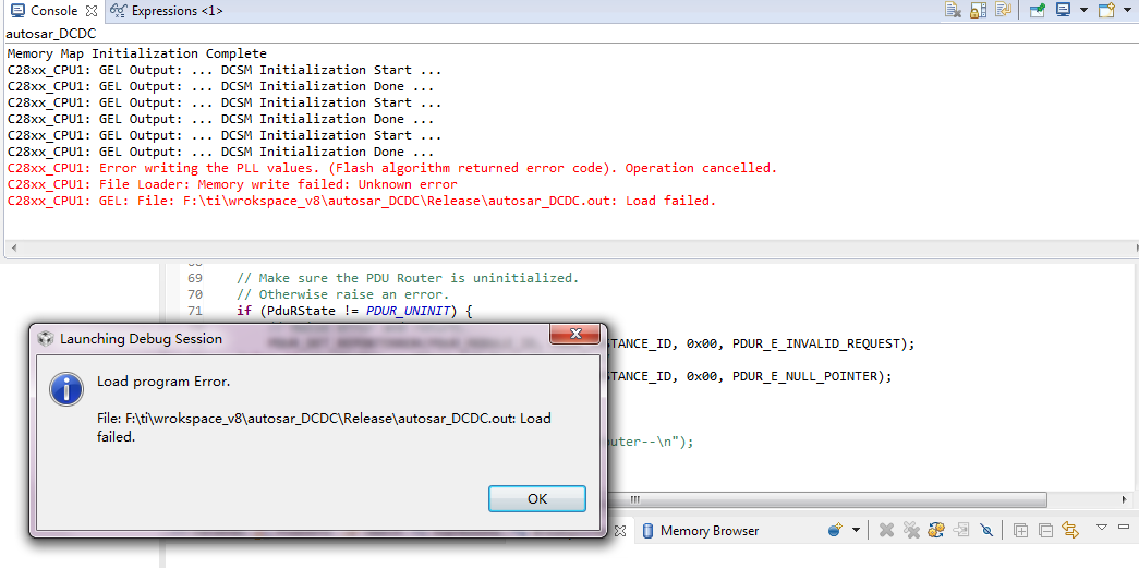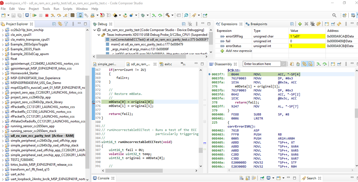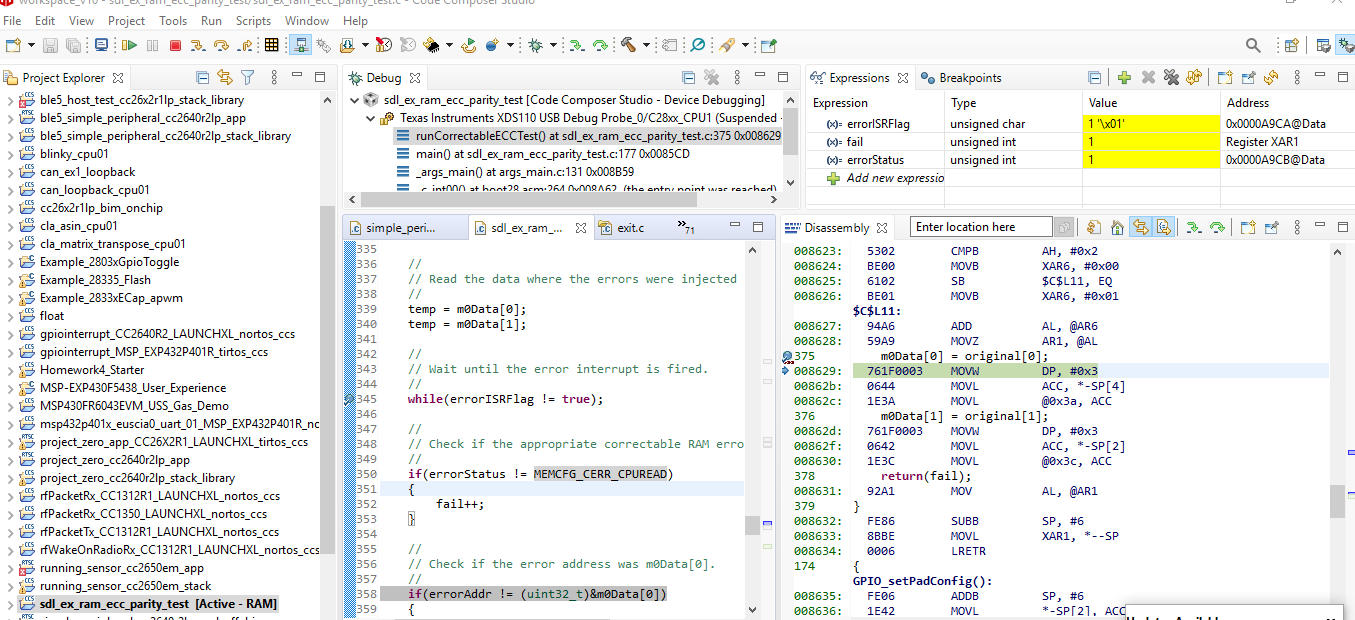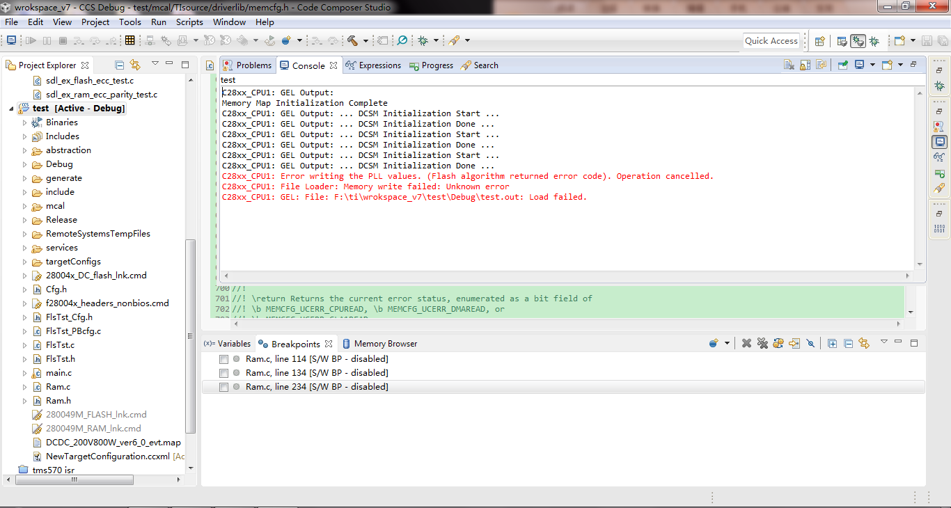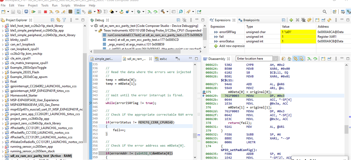 程序刚开始调试还是正常的,跑几遍,再下载之后就这样了。换了块板子,调试几次之后又出现了这种情况。我在调试ram ecc功能,用的是sdl_ex_ram_ecc_parity_test路径下的程序。