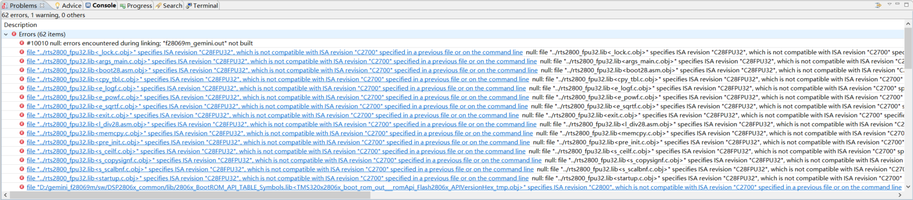 我用的双电机例程lab12c,此例程用的定点库,我想问下如何转成浮点库,启用f28069的FPU,以加快运算速度?我试着将rts2800_ml.lib设置成rts2800_fpu32.lib,但工程报错,请问如何解决?