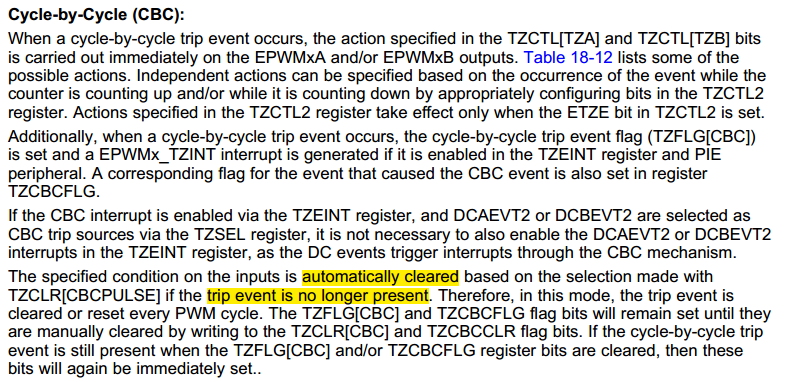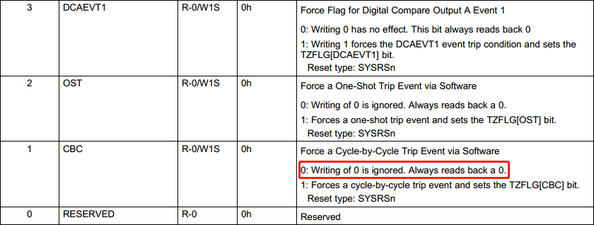 3)关机时利用Software-forced trip功能使PWM输出低,开机时去掉Software-forced tripping功能,输出正常互补波形。(这个功能需要Trip模块配置,麻烦)