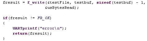直接用例程读取文件内容没有问题,例程中没有写入的部分,所以在例程基础上稍作了修改,增加了写入部分,但是在写入时出现这样的现象,如果原文件中有几个数据,那么就只能向文件中写入几个数据,如果原文件是空的,那么就一个数据也写不进去,尽管每次都向SD卡发送了512个数据。