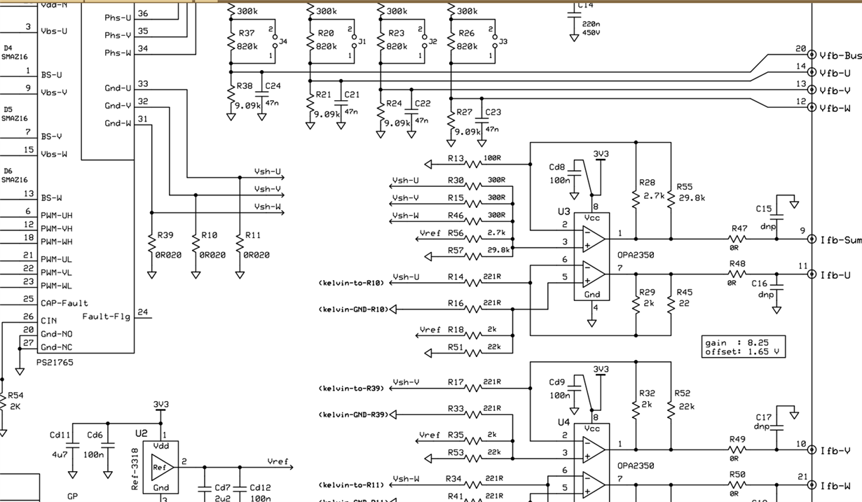 能否对照28335电机套件的电路图给我讲解一下电流采集电路的实现原理,真实电流经过怎样的过程就可以得到Ifb-V