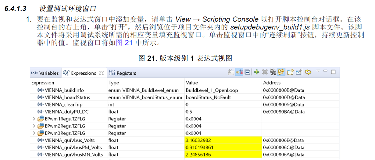 目前板子上电,可以正常调试了。遇到个问题,我按照下图打开了脚本控制台对话框,但是没有在控制台的右上角找到“打开”浏览项目文件夹里面的setupdebugenv_build1.js,也就没法进行调试系统所需的变量值,麻烦你在上图里面给我标一下。