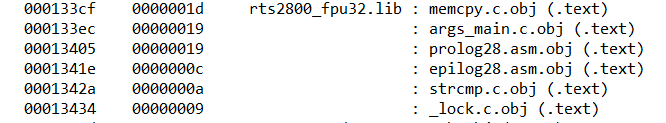 系统自带的rts2800_fpu32.lib库,每个函数应该是单独的c文件,编译生成单独的obj。