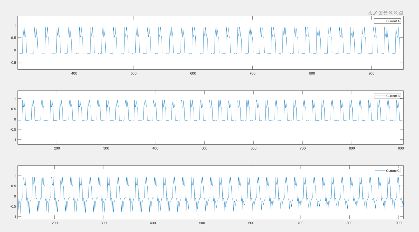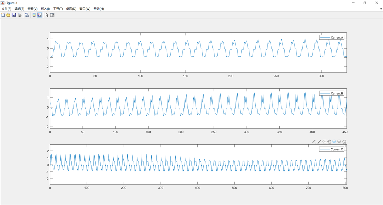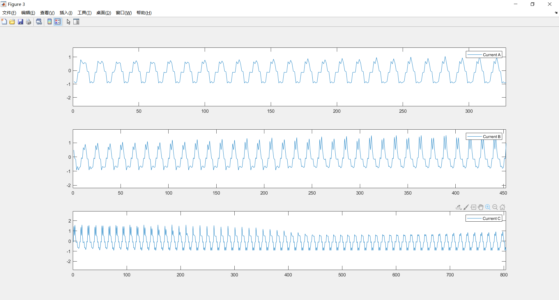 但是在读电流数据的时候发现三相电流波形是这样的:
