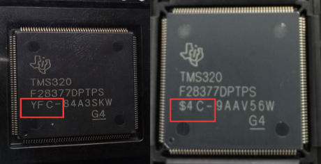 不同时间外购两批TMS320F28377D芯片。外观如图。
