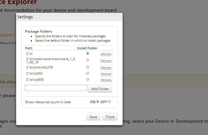 你好,我安装了ControlSuit和C2000ware、C2000Ware_MotorControl_SDK。如何才能在CCS9.3.0的离线资源管理器里面查看这些已经安装完的软件?界面和设置如下图所示