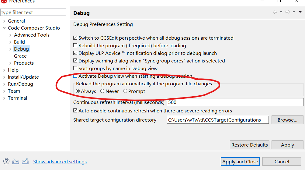 非常感谢您的耐心解答,我找到了那个选项,但是我的设置就是这样,改成always后,也无法自动load program,总是需要手动加载程序,run——load——load program.