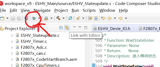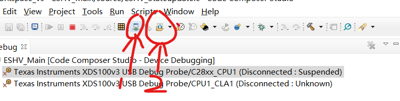 我使用的DSP为TMS320F28075,之前烧写程序时直接点击如下按钮就可以完成连接DSP和load program的步骤。