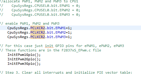2 PCLKCR打开的是epwm的时钟,参考3.7.3.3 CPU Subsystem Clock (SYSCLK and PERx.SYSCLK)
