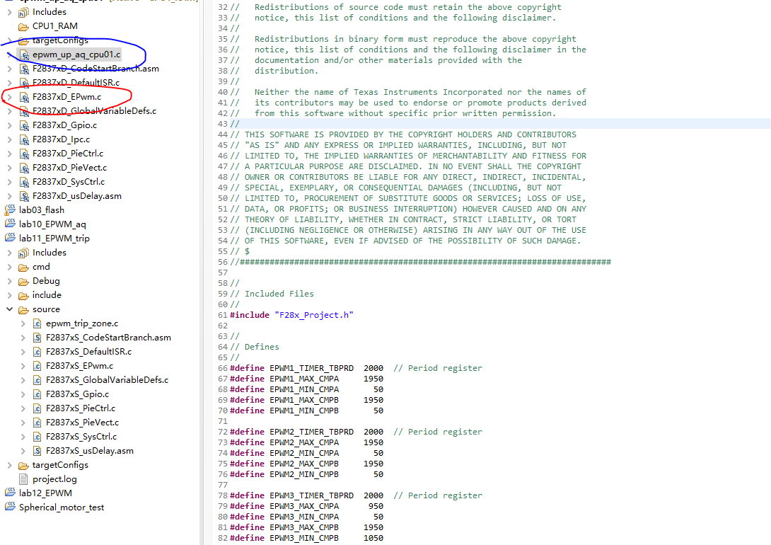 第一个问题:在官网用的epwm_ap(动作限定符)或者epwm_trip等都是扩展的pwm功能,我不想用这些功能,但是尝试修改了几次都失败了,感觉关闭不了,比如用epwm_ap这个程序pwm占空比已知来回波动,想问一下怎么更改他这个程序,或还是直接用他里面的另外的.c文件?
