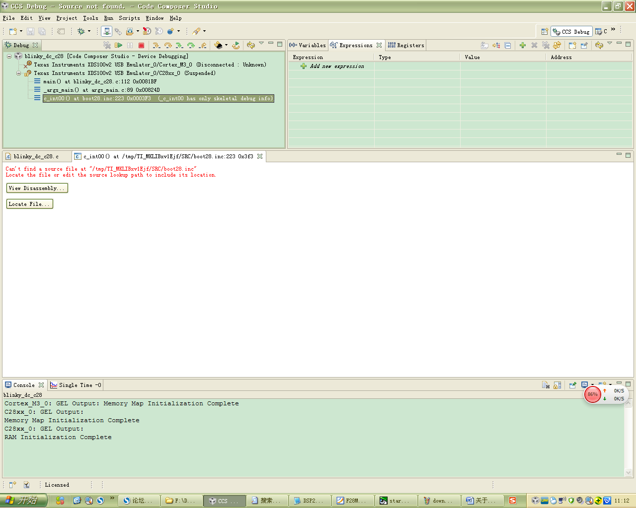 首先我看你是把程序加载到RAM中的,建议你改到flash中,因为M3和C28在复位后会将所有RAM清零,导致程序丢失。