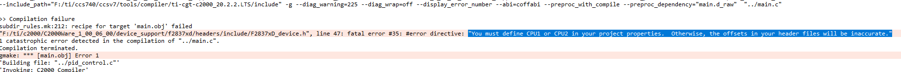 自己新建了一个F28377D的工程CCS文件,采用了官方库的头文件,编译之后他这里提示——“必须在项目属性中定义CPU1或CPU2。否则,头文件中的偏移量将不正确。”