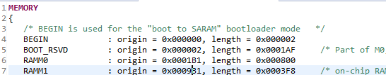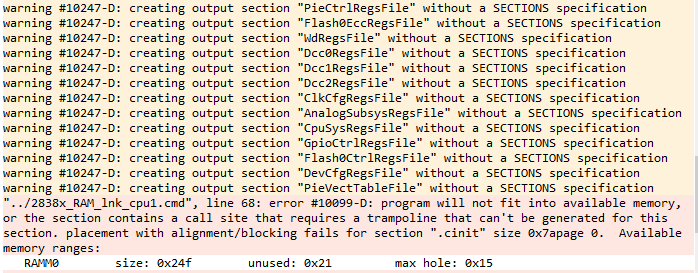 之后我在CMD文件中对RAMM0进行了设置,将默认的改成了0x000800,错误消失,但警告依旧存在,请问我需要做哪些设置,才能让警告消失