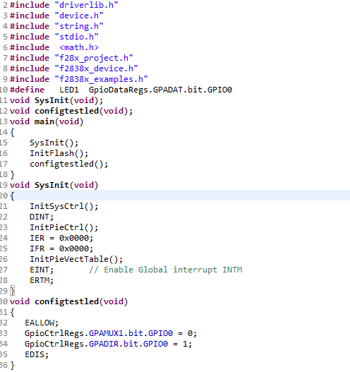 用CCS10.0导入了一个空的工程,之后在该工程中添加了如下代码: