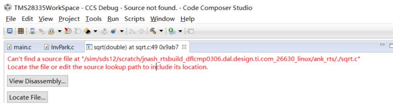 Can't find a source file at "/sim/sds12/scratch/jnash_rtsbuild_dflcmp0306.dal.design.ti.com_26630_linux/ank_rts/./sqrt.c"