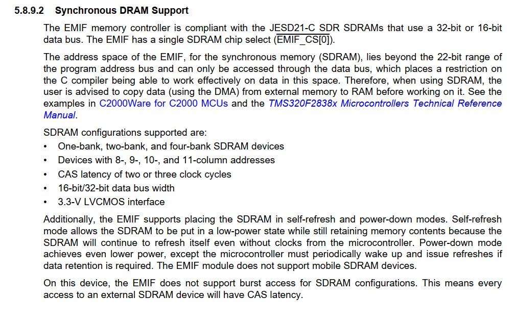最近买了28388D的芯片,打算做一个与自己项目相适应的板子,需要外扩SDRAM,但我在28388D的技术手册的5.8.9.2中看到的如下的说明: