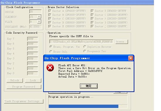 应该是烧写校验出错,你重新烧写一次,另外确认芯片的CMD文件跟芯片的存储映射一直。