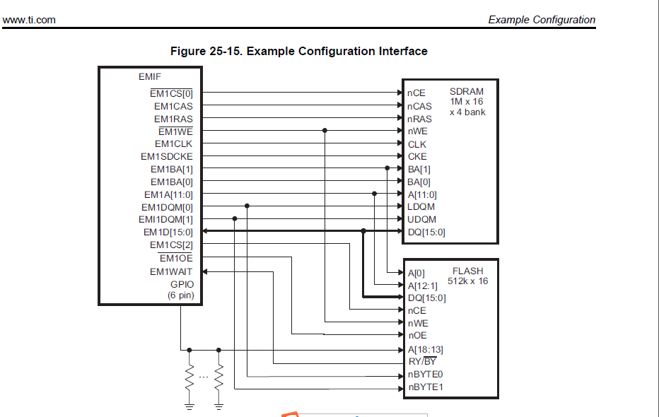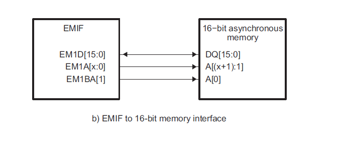 要用28379D外接一片容量是8MB的16bit结构的SRAM,是SRAM,不是SDRAM,存储器地址线是0---21,22根,然后28379D手册里说了最大地址宽度刚好也是22位,按28379D手册,连接方式应该用下图方式