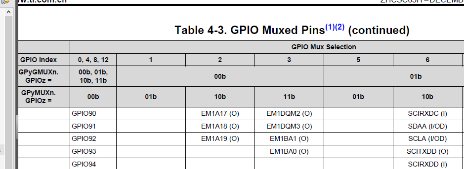 这里面,地址A13--A18都是用的普通GPIO来代替的,这幅图里面,A12以上的地址线都作为其它用途了,所以就只能用GPIO来代替地址线,所以,是不是说,28379D原生的地址线,实际就只有A0---A19这20条?如果使用了BA1功能,那地址线就只有0--18,19条了,剩下的高位地址线,就只能GPIO来代替?