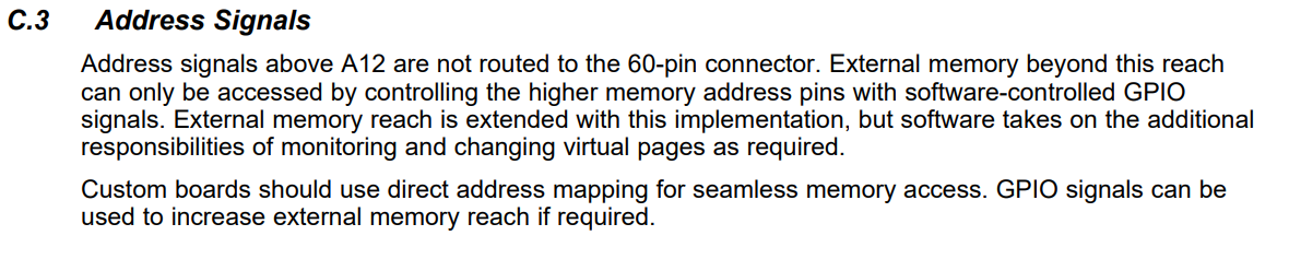 user18914063 说:28379D原生的地址线,实际就只有A0---A19这20条?如果使用了BA1功能,那地址线就只有0--18,19条了,剩下的高位地址线,就只能GPIO来代替?