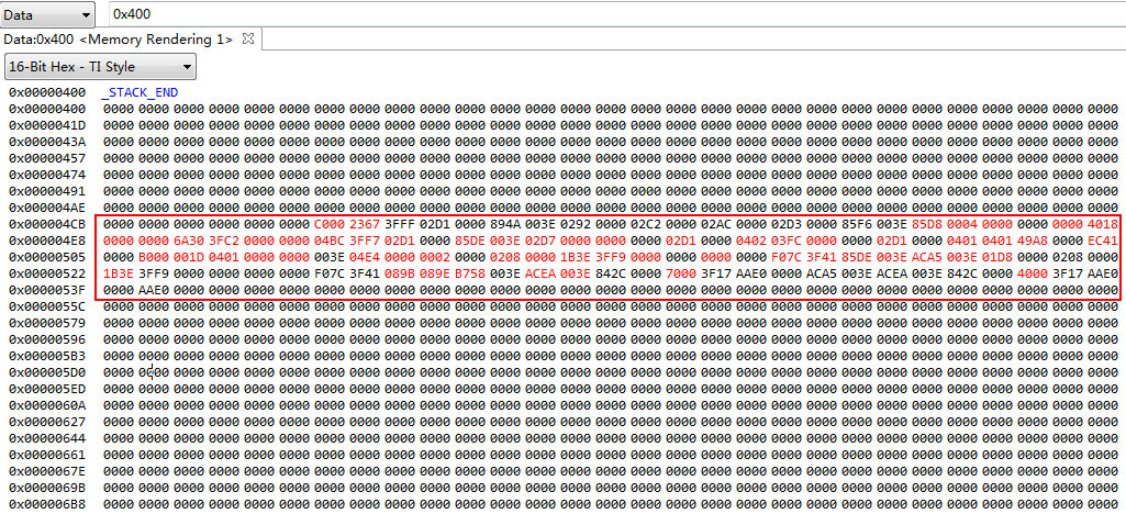 图2         CCS实时刷新时显示M1区(0x400-0x800)数据被改动